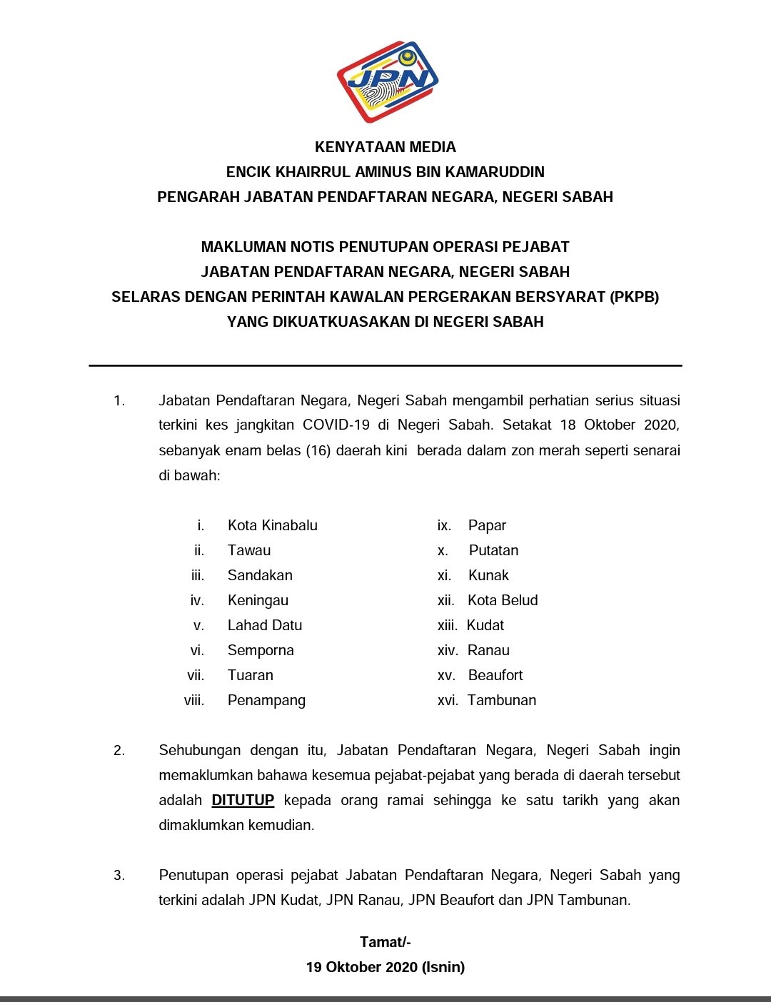 Jabatan Penerangan Sabah On Twitter Kenyataan Media Penutupan Operasi Pejabat Pendaftaran Negara Negeri Sabah Selaras Dengan Pkpb Yang Dikuatkuasakan Di Negeri Sabah Sumber Pengarah Jabatan Pendaftaran Negara Negeri Sabah Khairrul